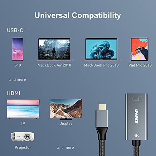 BROAD COMPATIBILITY – The BENFEI USB-C to HDMI is compatible with 13″/15″ MacBook Pro 2021, 2020, 2019,2018,2017, iMac, MacBook, MacBook Air, Google Chromebook Pixel, Yoga 900, Dell XPS 13 (9350), Dell XPS 15 9550, Dell XPS12 9250, DellPrecision 5510, HP Spectre X2, HP Spectre x360, HP Elitebook Folio G1, HP Elite x2 1012 G1, Acer Switch Alpha 1, Acer Spin 7, Acer Chromebook R13, Samsung Chromebook Plus, Samsung Galaxy TabPro S,Samsung Galaxy A7 2017, LG G5, LG V20, HTC 10