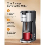 Your Perfect Coffee Maker for Ground and Pod Coffee – This coffee maker is compatible with K-Cups and includes a reusable ground basket so that you can brew your preferred brand of coffee powder or tea. Brew any size cup between 6 and 14 oz for a smooth cup of coffee to kick- start your day. Its large capacity powder basket can hold more coffee powder (max 0.88oz), allowing you to get the tastiest cup of coffee or tea.