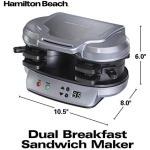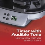 Forget the fast food drive-through. With the Hamilton Beach Breakfast Sandwich Maker, you can enjoy a hot, homemade breakfast sandwich in under 5 minutes. Simply place the ingredients inside, build the base of your sandwich in the bottom layer, place the egg on the cooking plate and close the lid. Slide the cooking plate out and your sandwich assembles itself. Open the lid and your hot breakfast sandwich is ready to eat. The included recipe book provides a variety of breakfast sandwich options, from the traditional egg, ham and cheese to the unique cheddar, apple, bacon and egg croissant sandwich.