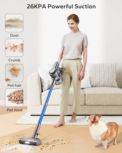 ✅[2 Powerful Suction Modes] H18 Cordless vacuum cleaner with new upgraded premium motor, the strongest suction power in MAX mode up to 26,000 Pa, easily deal with all varieties of dust and dirt such as pet hair, cat litter, dog food and many more