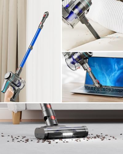 ✅[180° Rotatable Brush & LED Headlights] H18 Cordless Vacuum Flexible Floor Brush makes it easy to clean under furniture and in dead spots.The LED headlight illuminates every corner of your home to ensure you don’t miss any dirt and debris.