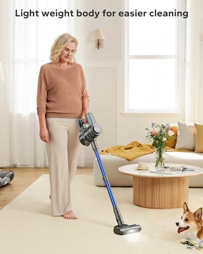 ✅[1.5L XL DUST CUP & V-SHAPED FLOOR BRUSH] Large dust cup easily holds more dust, one-touch emptying avoids contact with dust. New V-shaped anti-tangling brush effectively solves the problem of tangling, which is common with traditional vacuum cleaners.