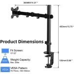 VERY STURDY AND SAFEY: This monitor mount arm with sturdy steel design, very sturdiness. Compared to other vesa monitor arm, Our single arm monitor mount is more than three times stronger. No need to worry about safety issues anymore. Monitor desk mount stand supports both C clamp and grommet mounting methods, both of which provides stable support for your monitors.